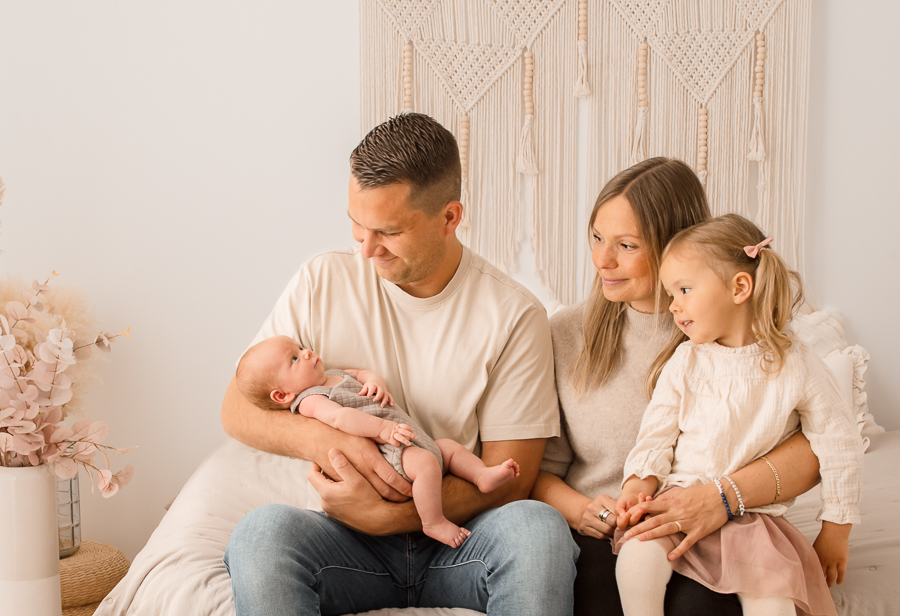 Manche Begegnungen fühlen sich sofort vertraut an. Genau so war es bei diesem Neugeborenenshooting. Die Familie war bereits zum Neugeborenenshooting der großen Schwester bei mir und ich habe mich sehr gefreut, sie nun wieder in meinem Studio begrüßen zu dürfen. Es ist jedes Mal etwas ganz Besonderes, Familien über mehrere Lebensabschnitte hinweg begleiten zu dürfen.
