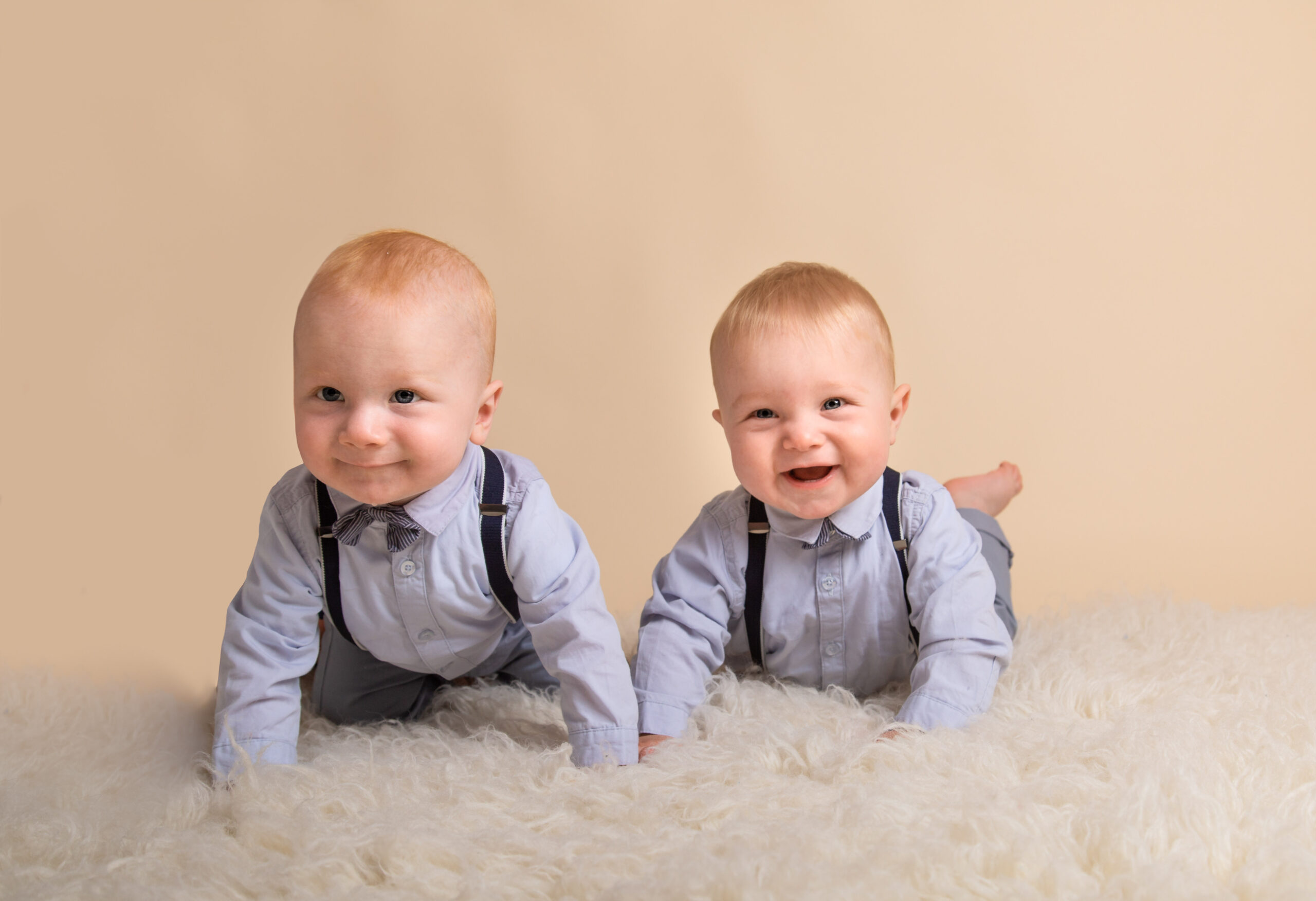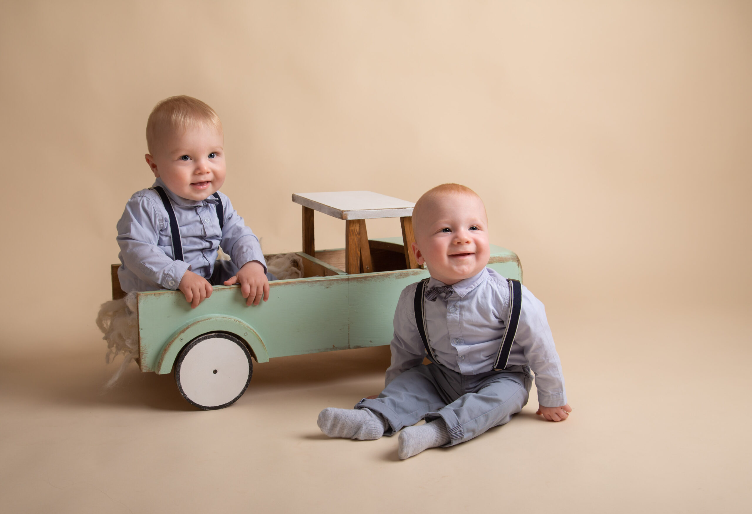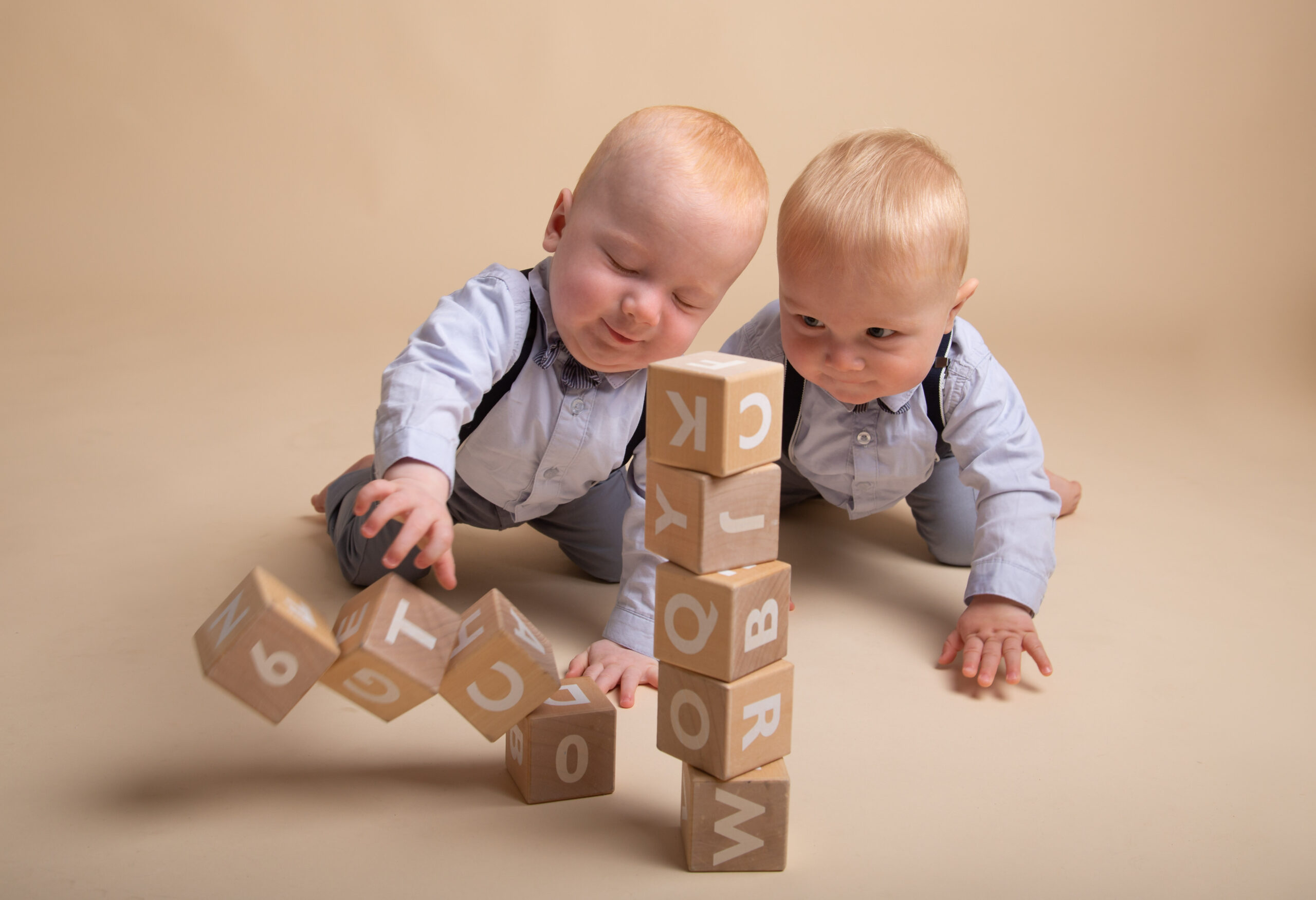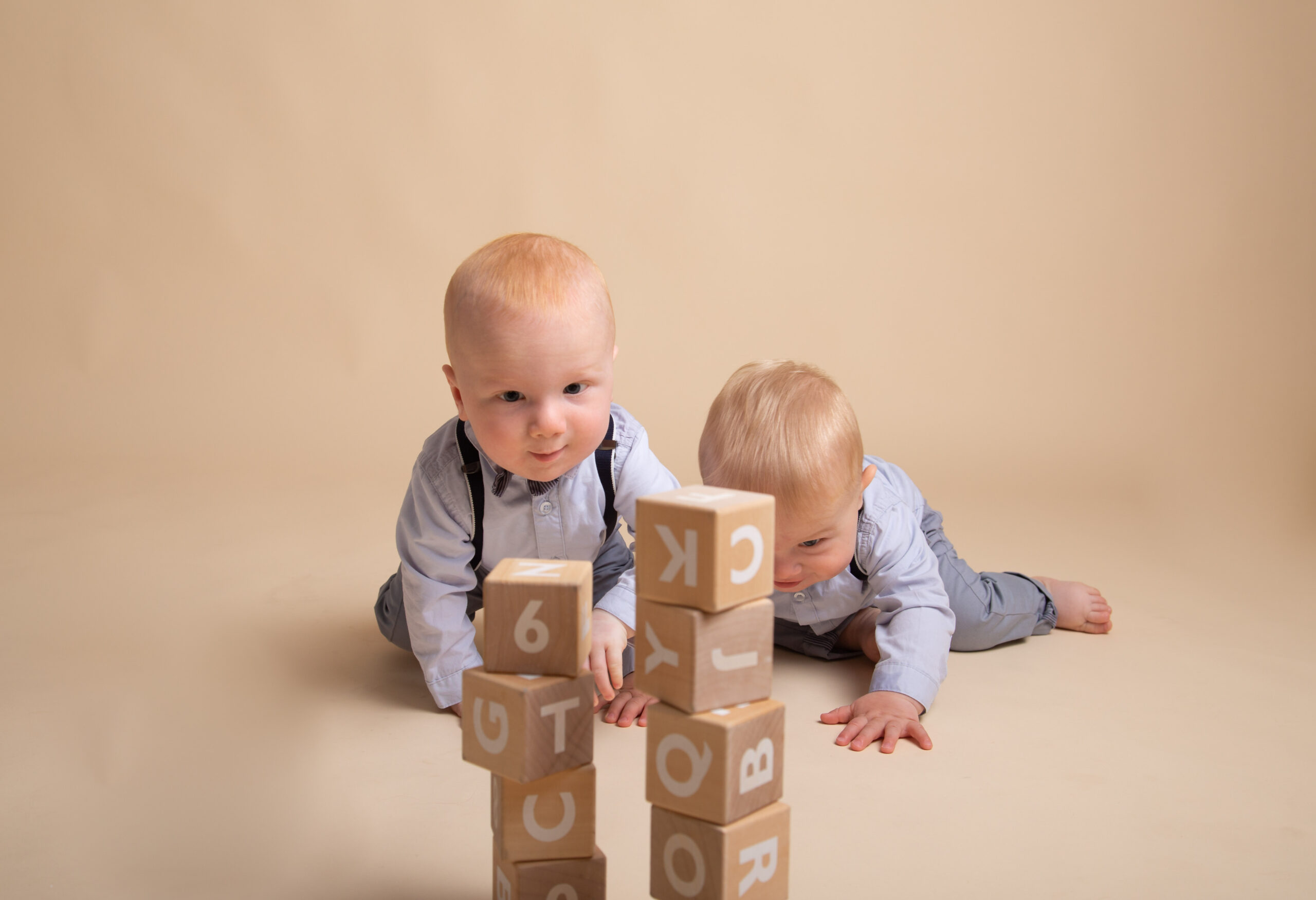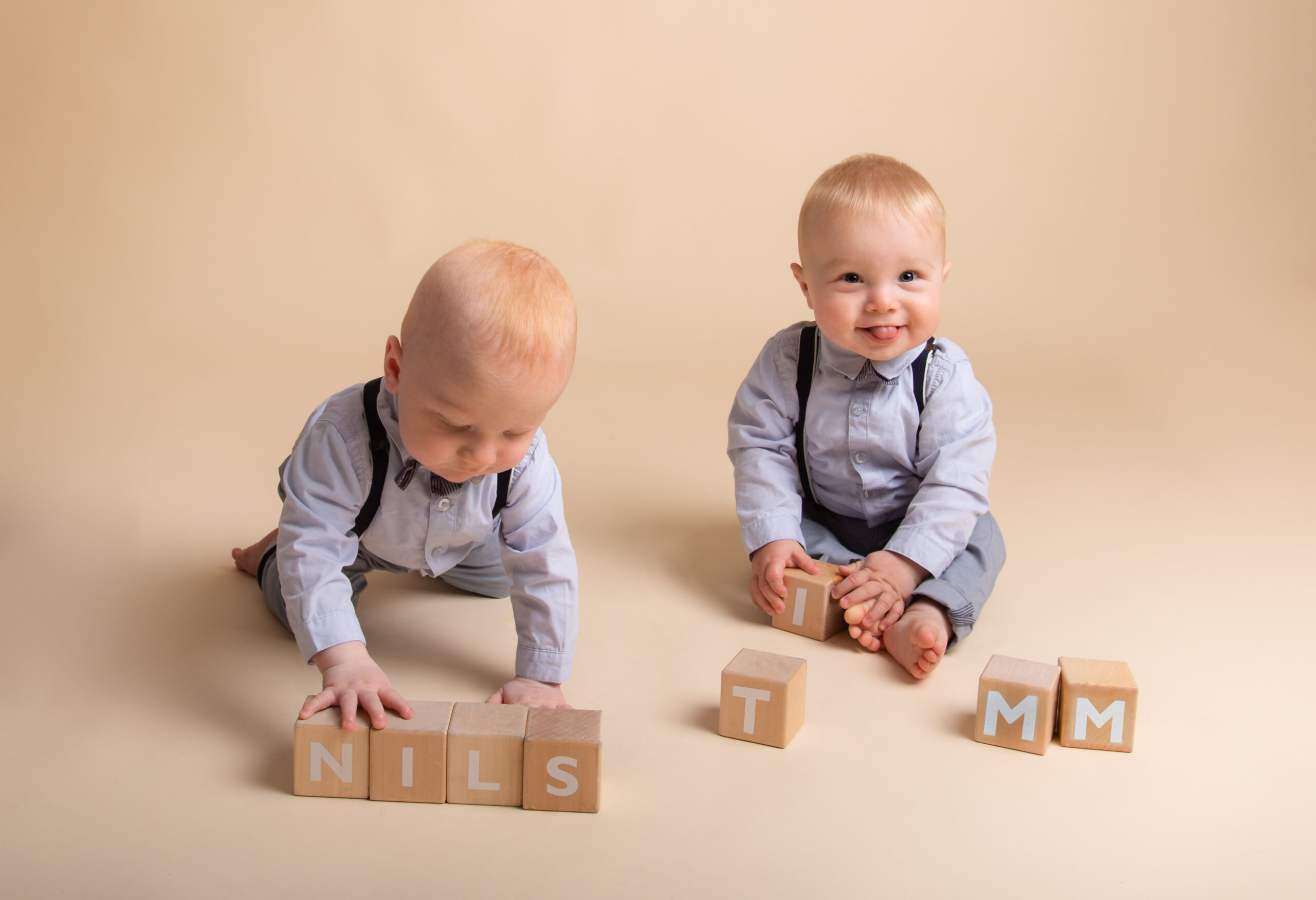 Die süßen Zwillinge Timm und Nils durfe ich bereits frisch geschlüpft fotografieren. Es kommt mir vor als wäre es ein paar Wochen her, dass sie ganz brav im Holzbottichen geschlummert haben. Jetzt sind sie schon so groß und lebhaft, dass sie kaum eine Minute still sitzen konnten. Sie sind richtige kleiner Entdecker und haben erstmal das Studio erkundet. Nach ca. einer halben Stunde waren wir fertig und ich glaub Mama und Papa waren es auch. So zwei kleine Krabbeln an Ort und Stelle zu halten und gleichzeitig zum lächeln zu animieren ist ganz schön anstrengend. Aber am Ende des Tages kommt es ja auf das Ergebnis an und so sind supersüße Bilder für die Karten zum ersten Geburtstag entstanden.